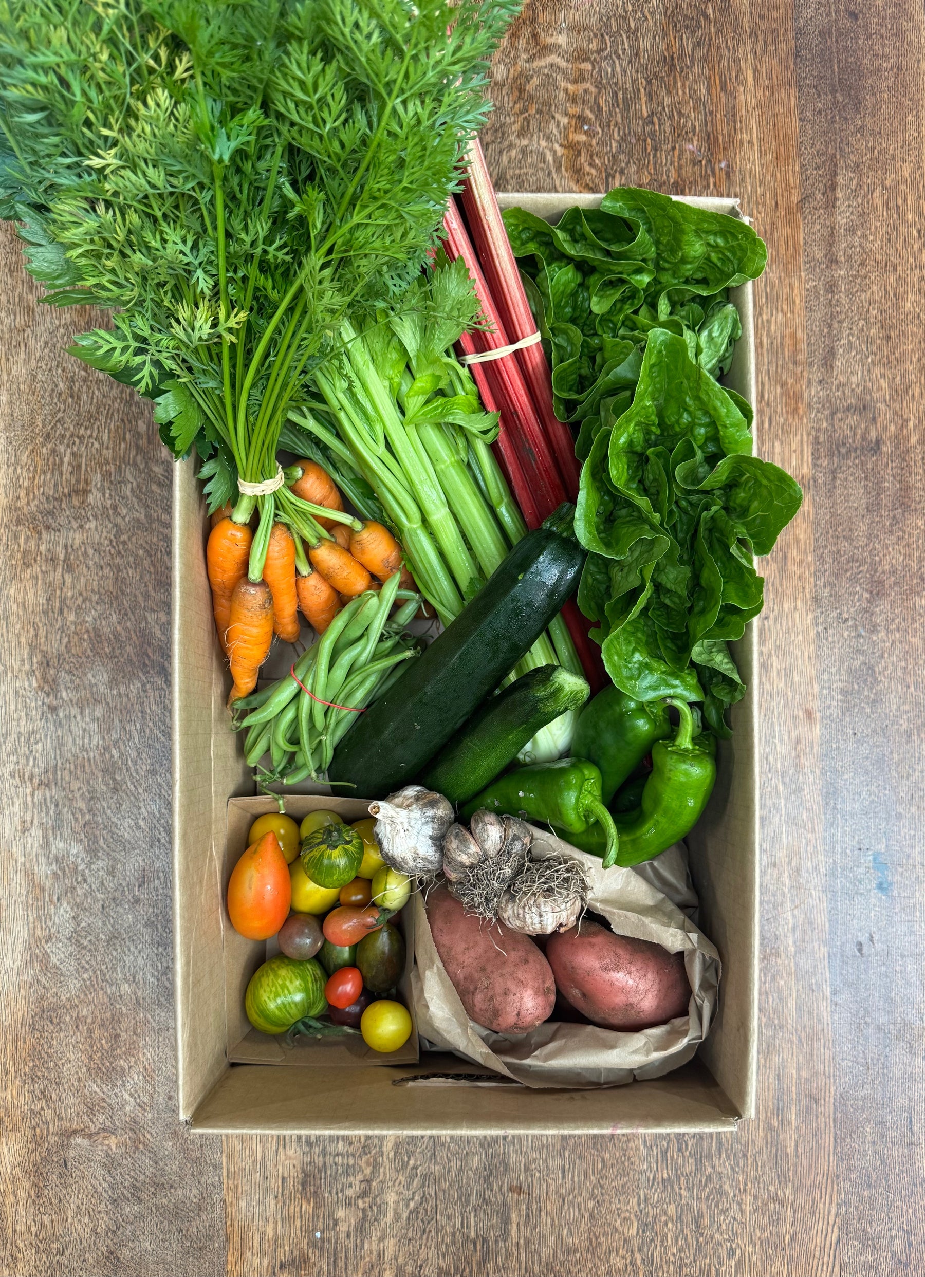 The boxes contain a variety of items that change regularly with what is available in each growing season, and local weather.
