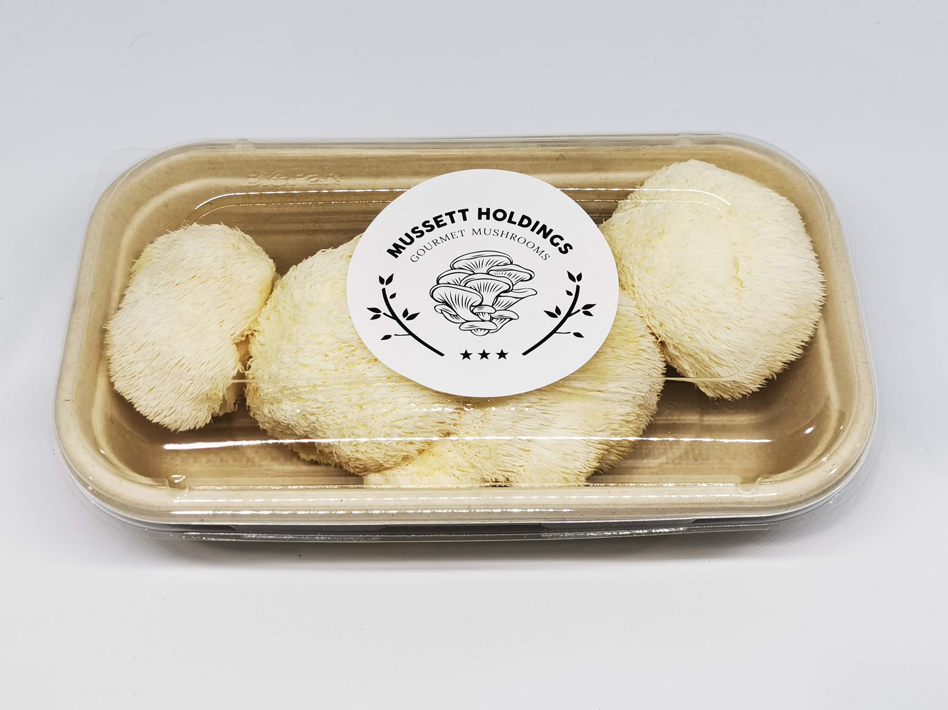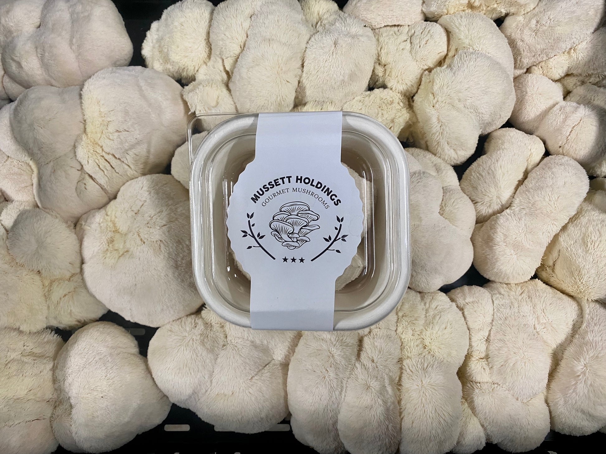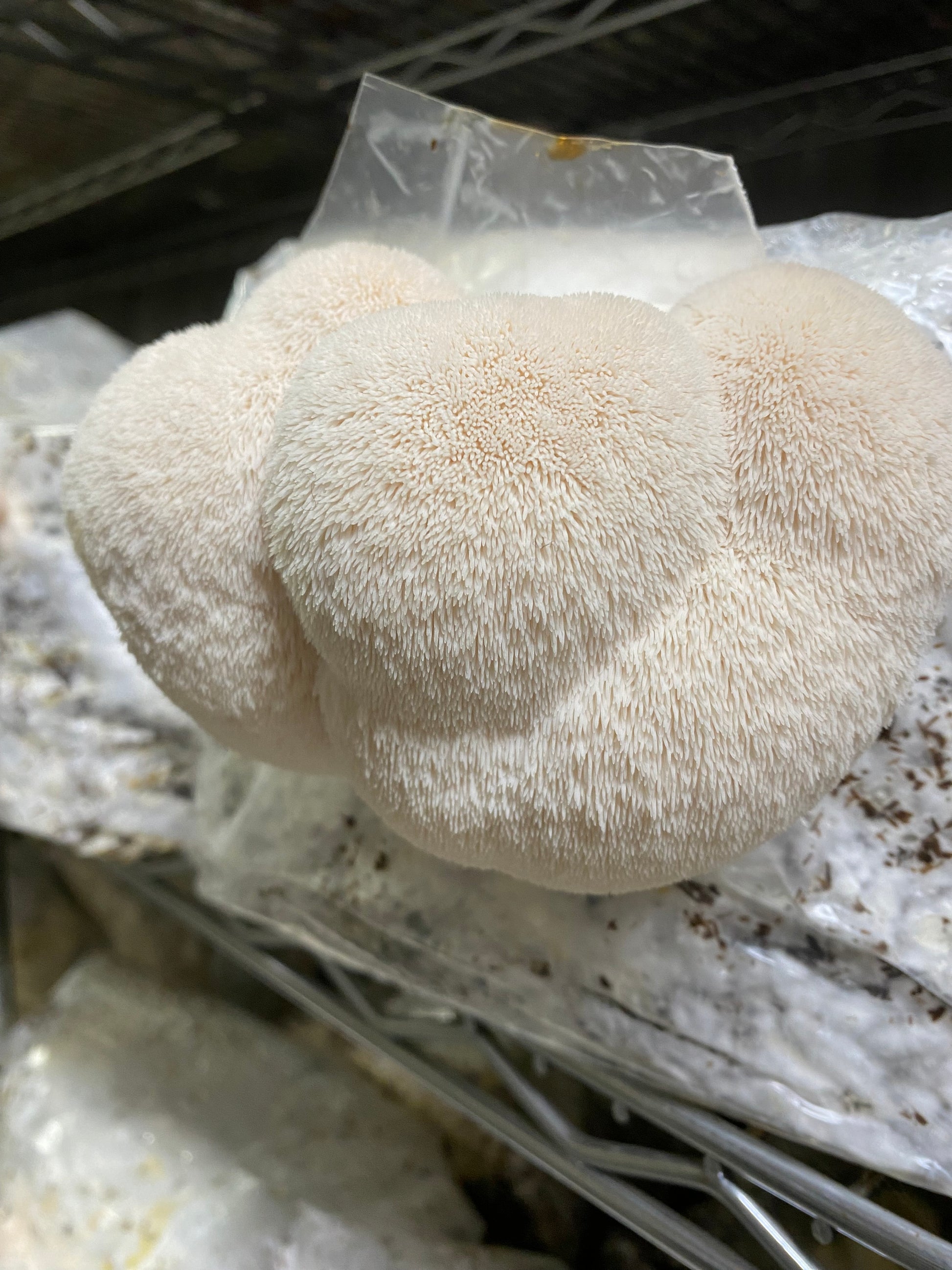 Lion’s mane mushrooms are large, white, shaggy mushrooms that resemble a lion’s mane as they grow. They are a delicious meaty mushroom with a unique flavour and texture.