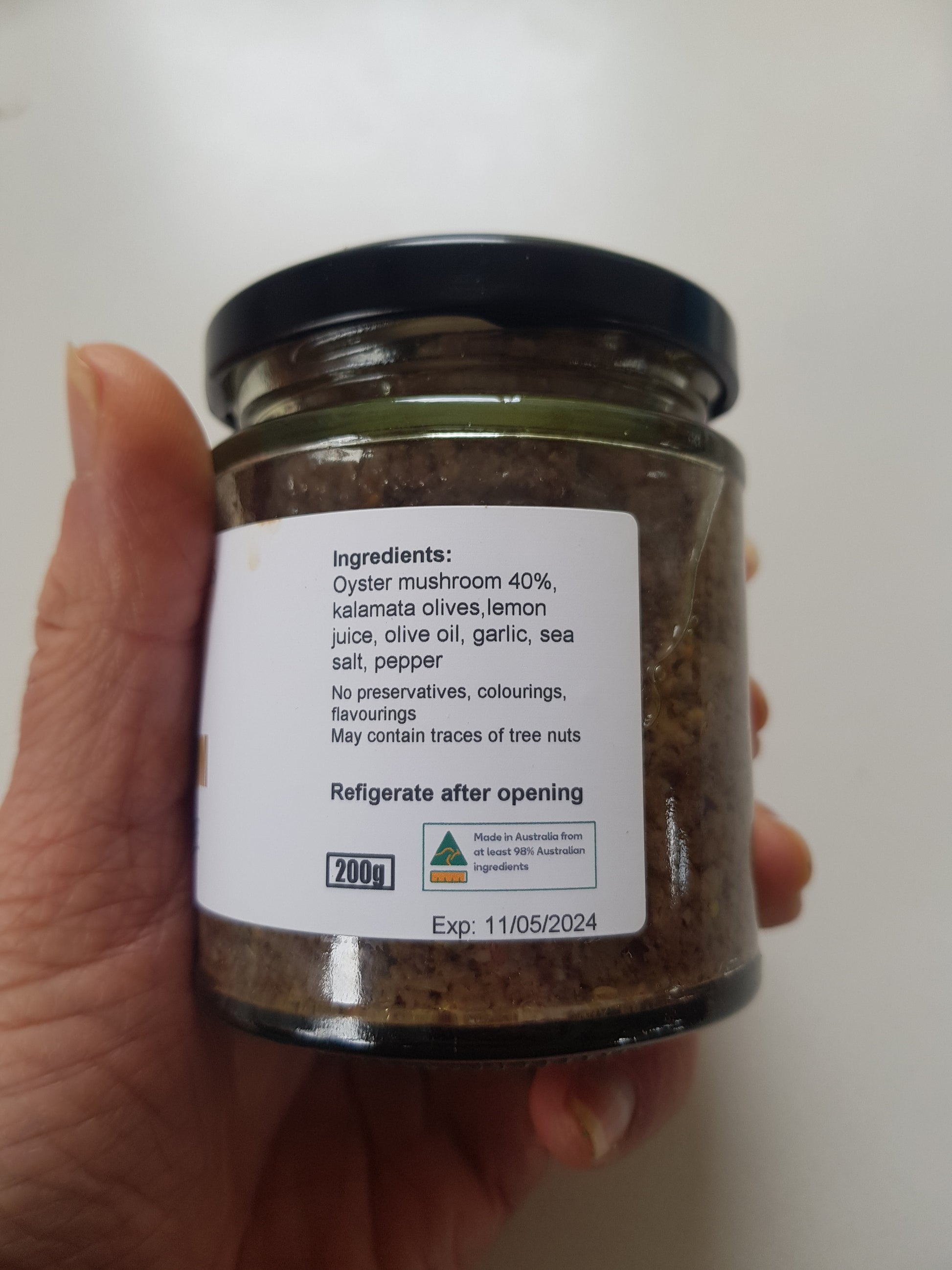 This Mushroom Tapenade has been prepared by Kieltys Irish in Mittagong using our lions mane mushrooms, combined with Kalamata olives. No preservatives!